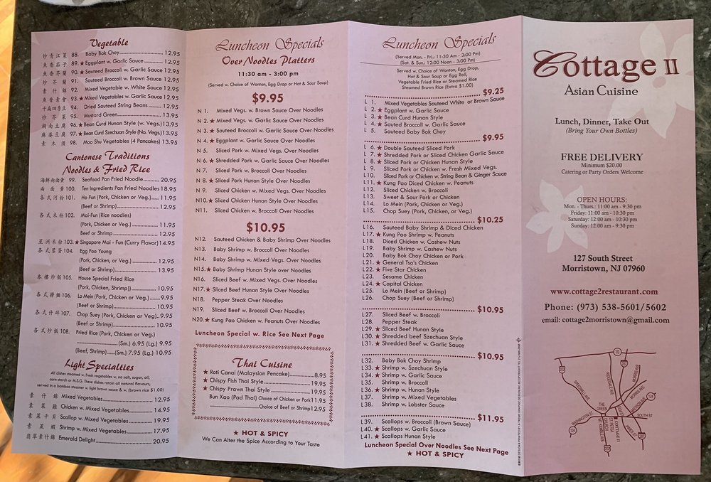 Introducing Cottage II Hunan & Szechuan, a Chinese restaurant located in Morristown, NJ. This establishment offers a range of amenities such as reservations, delivery, takeout, vegan options, catering, and more. Customers praise the cleanliness, friendly service, and comfortable atmosphere.